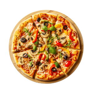 Veggie patty served with tomatoes, lettuce, cucumbers and vegetarian mozzarella