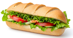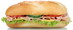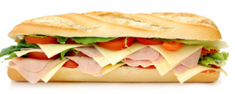 Sliced ham layered with melted cheese, lettuce, and tomatoes in a warm sub roll.