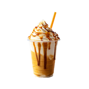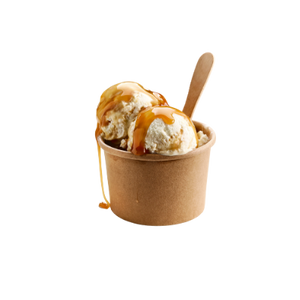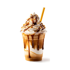 Vanilla ice cream, caramel sauce, pretzels, milk